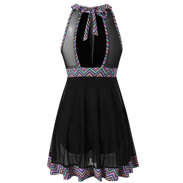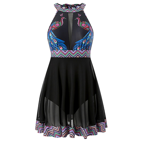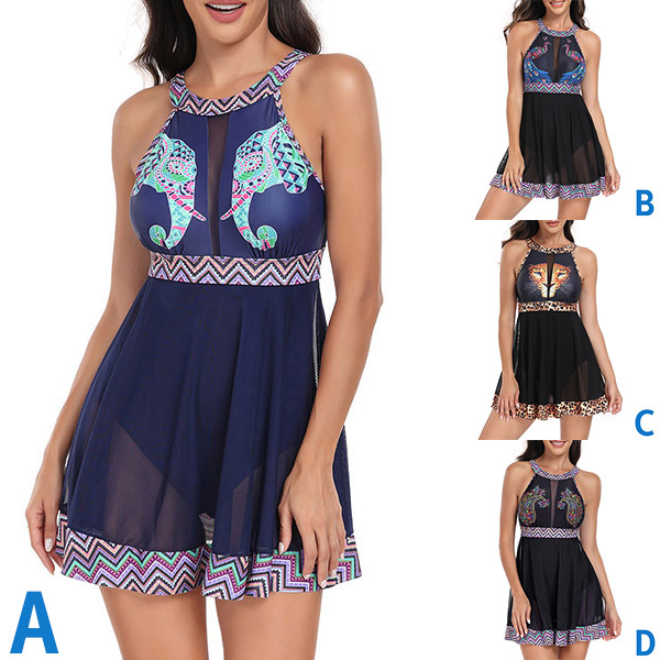Sexy Animal Printed Semi-through Two-piece Swimming Suit Consist of Swimming Dress and Swimming Bottom