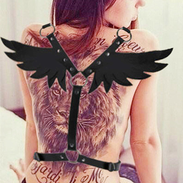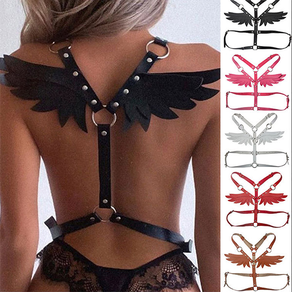 Sexy Artificial Leather Angel Wing Suspender Belt