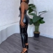 This set features a bandeau top with a front lace-up detail for a sexy and alluring look, paired with high-rise skinny pants for a sleek and modern outfit. Crafted from high-quality artificial leather PU fabric with meticulous attention to detail, this two-piece set is designed to be sexy and on-trend. Perfect for party wear~