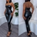 Sexy Artificial Leather PU Two-piece Set Consist of Front Lace-up Bandeau and High-rise Skinny Pants