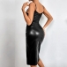 Sexy Asymmetrical Artificial Leather PU Ruched Ruffled Bodycon Dress
