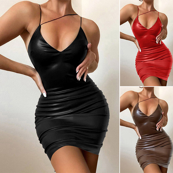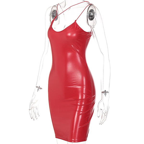 Sexy Backless Artificial Leather PU Bodycon Slip Dress