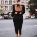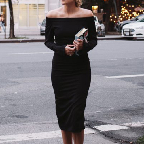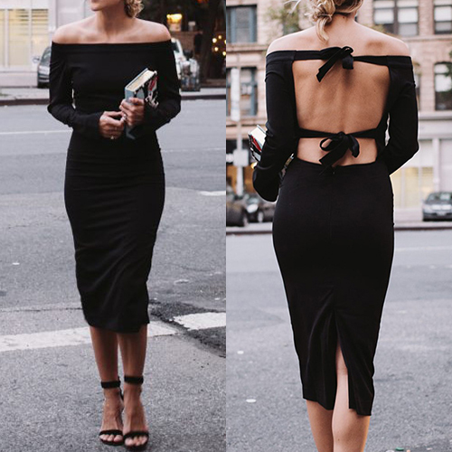 mysterious and flattering black color,its seductive details like boat neck,lace-up backless,slit hem and fit
