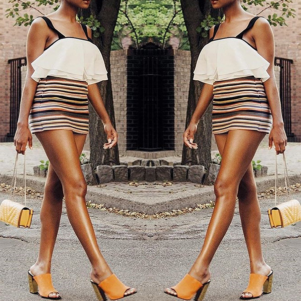 It is an easy to thing to showcase your charming curve and female appeal through this sling dress. Striped style,
