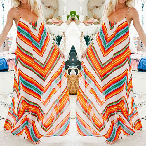 Sling style,with backless design adding some sexy flavor. And its colorful striped design makes