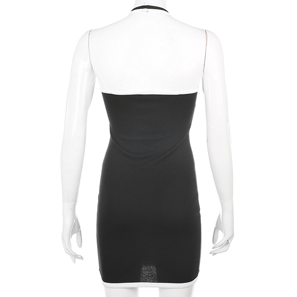 Sexy Backless Contrast Color Slim Fit Halter Dress