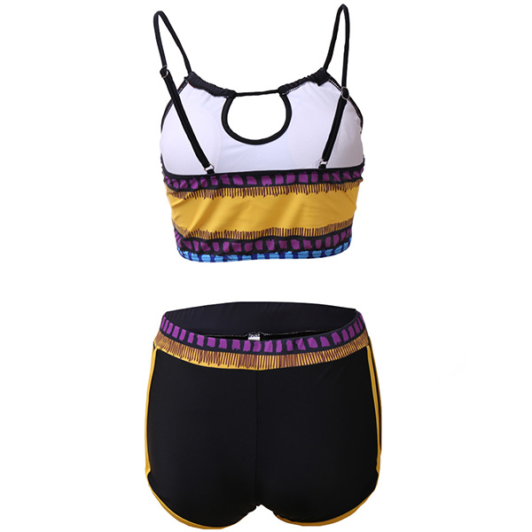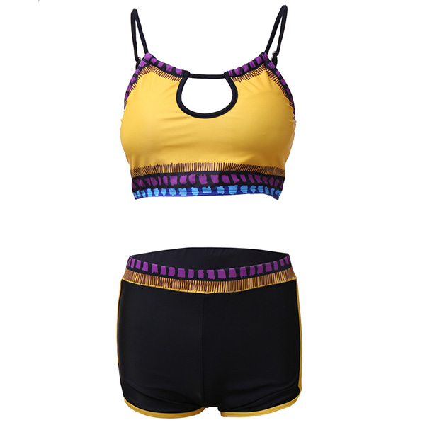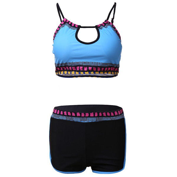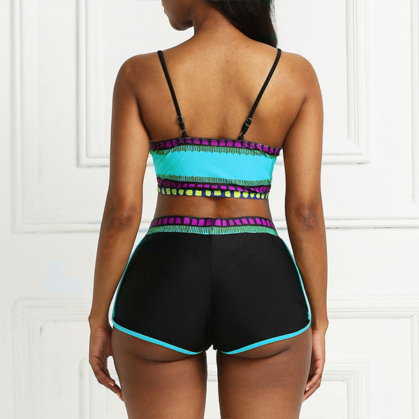 For these swimming lovers,a cozy yet sexy swimsuit set is an essential. So how about this set? Including a backless sling crop top and a shorts,its soft,breathable and quick-dry fabric can give you a comfortable day,and the contrast color design will make it look more attractive. Enjoy your swimming time with this swimsuit set!