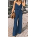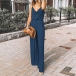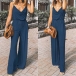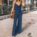 Sexy Backless Cowl Neck High Waist Solid Color Sling Wide-leg Jumpsuit