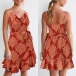 A dreamy, relaxed piece perfect for beach days, tropical getaways, or for just channeling an easy going vacation state of mind, this dress is the perfect choice. Sling style,with backless,cowl neck and an irregular ruffle hem design,this dress knows how to make you look sultry and flirty. And the chic printed details will make this piece look more eye-catching. Make your summer wardrobe more complete by adding this dress.