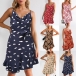 Sexy Backless Cowl Neck Irregular Ruffle Hem Printed Sling Dress