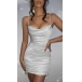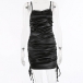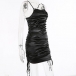 Sexy Backless Cowl Neck Side-drawstring Sling Wrinkled Dress