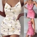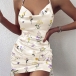 Sexy Backless Cowl Neck Slim Fit Printed Sling Dress