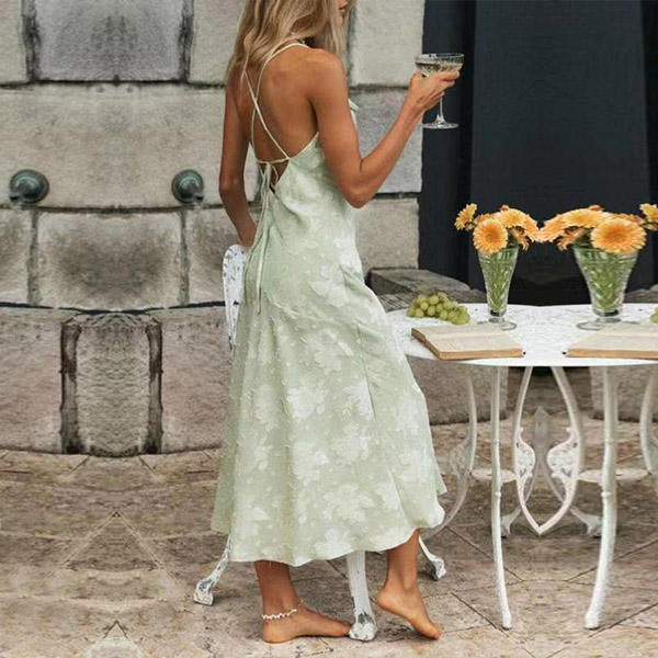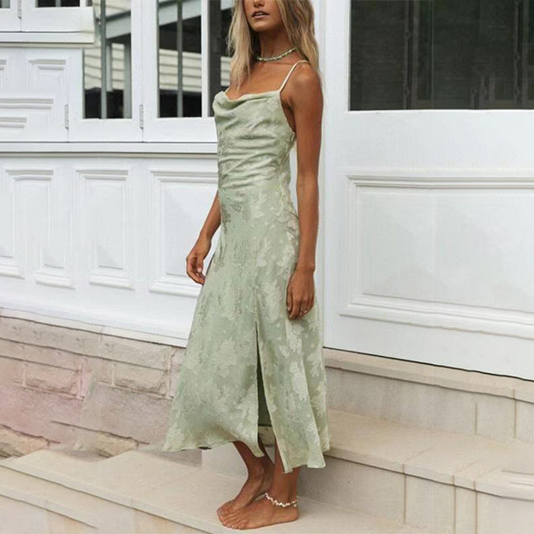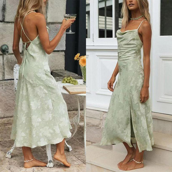 Portray your flirty image and charming style on the weekends when you're out for coffee or tea with this printed dress! Sling style,with backless,cowl neck and slit hem design,these details can offer you a more alluring look. Dress it up with your sexy heels,you can look more beautiful and stunning!