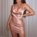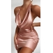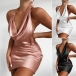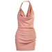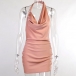 Sexy Backless Cowl Neck Solid Color Halter Dress