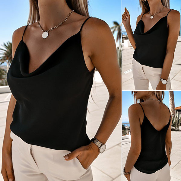 Greet the sun-soaked summer days with this wonderful top. Sling style,with backless and cowl neck design,this piece not only can give you a cool and comfortable day,but also can expose your sexy and charming skin. Try to match with a shorts to have a charming summer look.