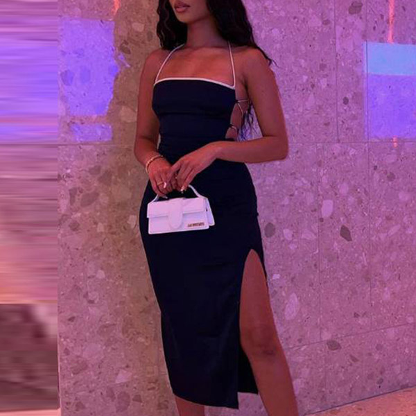 Sexy Backless Cross-criss Side Slit Party Dress