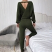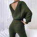 Sexy Backless Crossover V-neck Dolman Sleeve Knit Top + Pants Two-piece Set