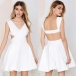 White is a pure and elegant color. Its backless and crossover v-neck design makes it more sultry.