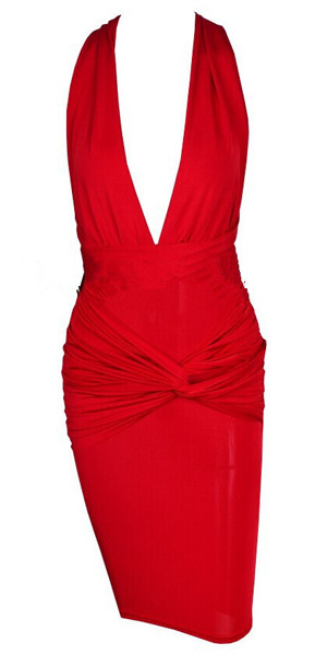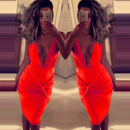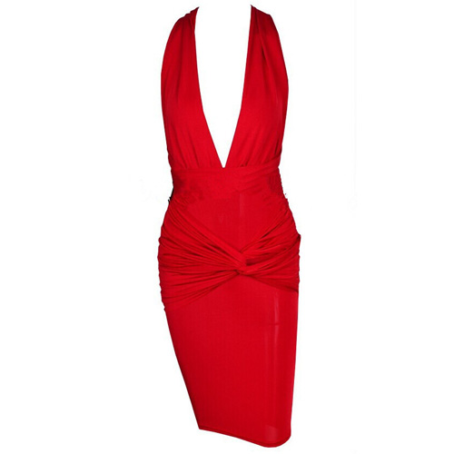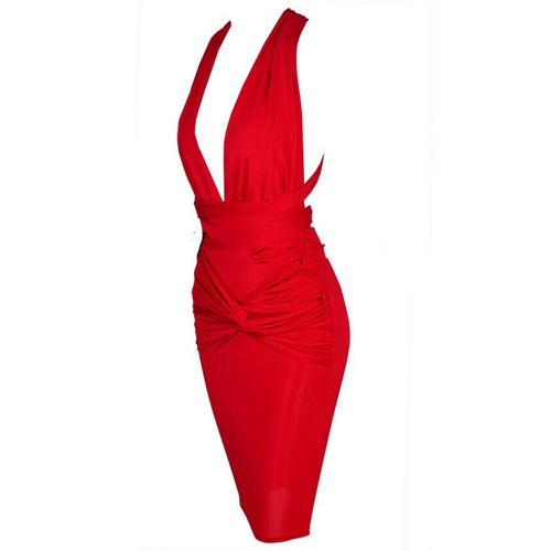 also adds life to the dress and distinguishes the dress with the knot-like design. The V-neck and backless