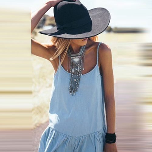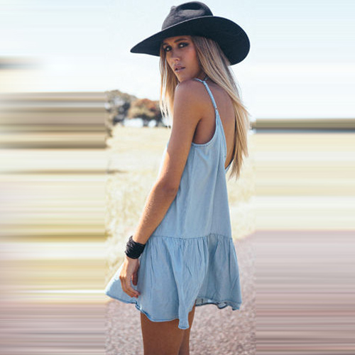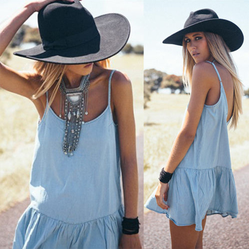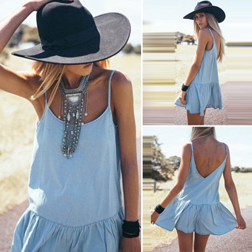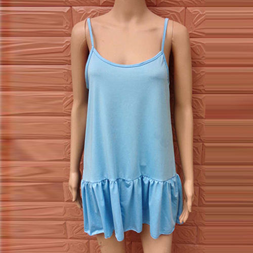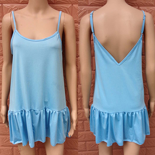 Sling style,with backless,deep v-neck and flouncing hemline design,simple but sexy and sultry.