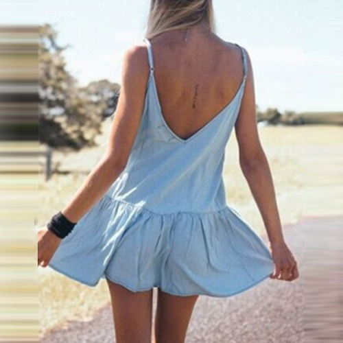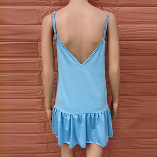 Sexy Backless Deep V-neck Flouncing Hem Sling Dress