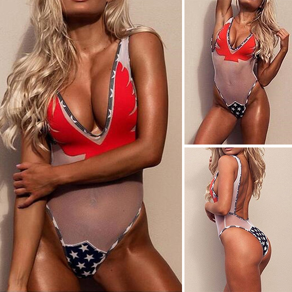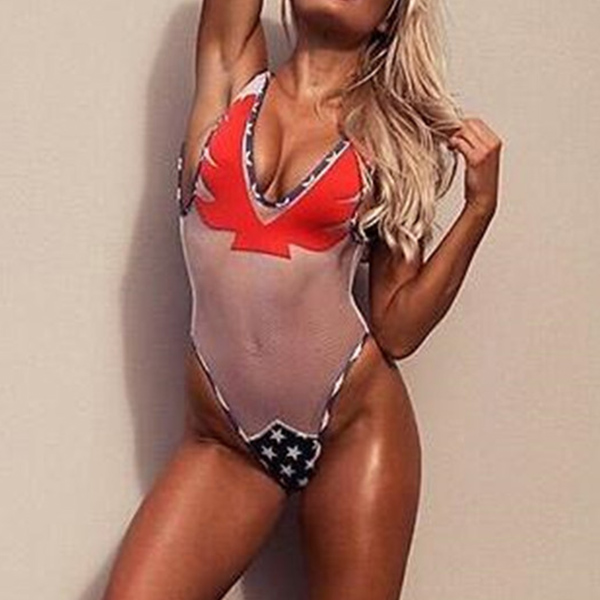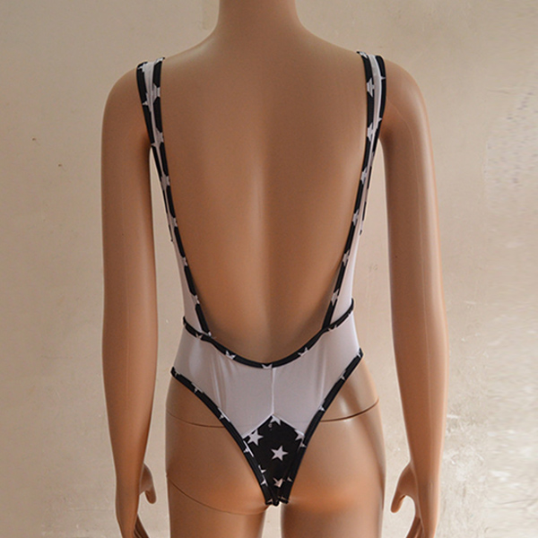 flaunt off through this swimsuit? One-piece style,with backless,deep v-neck and gauze spliced design makes it look so