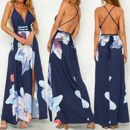 deep v-neck,high slit hem and a maxi length,this dress is sure to give you a sexy and alluring appearance.