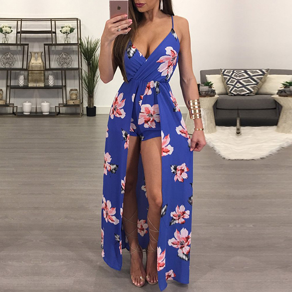 This style different romper still can lend you a sexy and alluring style. Sling style,with backless,deep v-neck and high slit hem