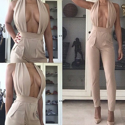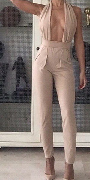 It'll be pretty hard not to feel street-chic in this sleeveless jumpsuit. It backless and deep v-neck