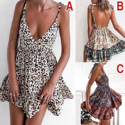 Hey,girls,you can just step out to greet the sun-soaked summer days with a delight piece such as this dress. Sling style,with backless and deep v-neck design,this dress can make you look alluring and sexy. And its vibrant floral print details will help you win more eyes. You can add a sparkle necklace for a more stunning look!