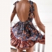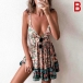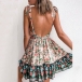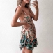 Sexy Backless Deep V-neck High Waist Printed Sling Dress
