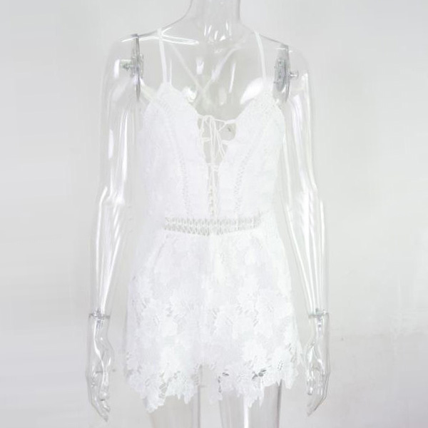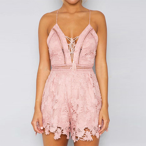 Showcasing your alluring style and female appeal is an easy thing if you have this lace romper. Sling style,with backless,