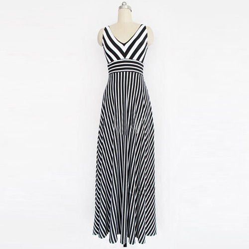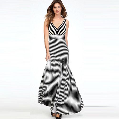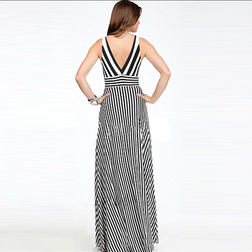 Add some sexy and sultry-inspired elements to your wardrobe with this maxi dress. Striped style,