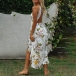 Sexy Backless Deep V-neck Irregular Hem Lace Spliced Printed Dress