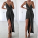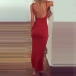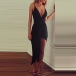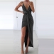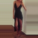 Sexy Backless Deep V-neck Irregular Slit Hem Solid Color Sling Dress