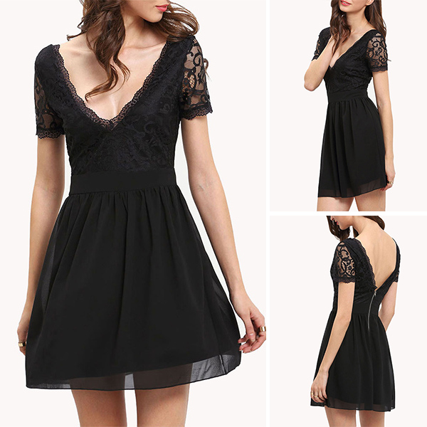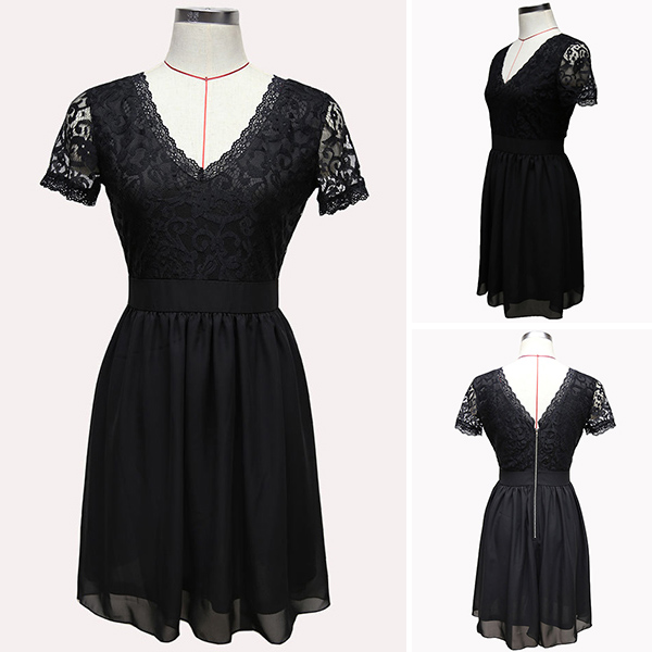 Can't make a decision between a lace dress and a chiffon dress? Then choose this combo! This short sleeve chiffon dress