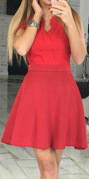 Lace spliced style,with backless and deep v-neck design,this dress is sure