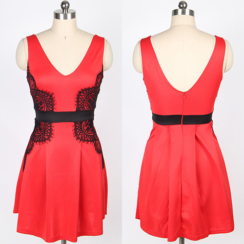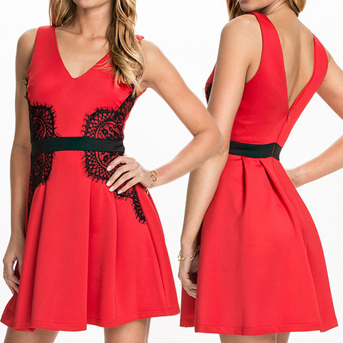 with backless,deep v-neckline and lace spliced details at its waist part,this wonderful