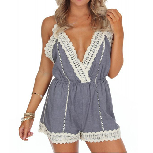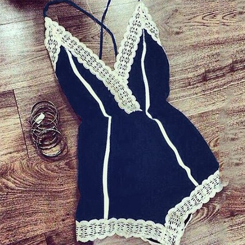 Sling style,with backless,deep v-neck and lace spliced design,sexy and charming. This wonderful