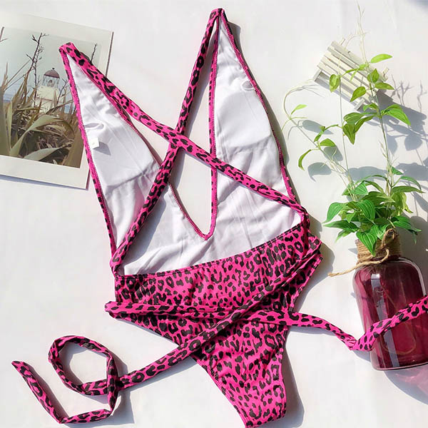Sexy Backless Deep V-neck Leopard Printed One-piece Swimsuit