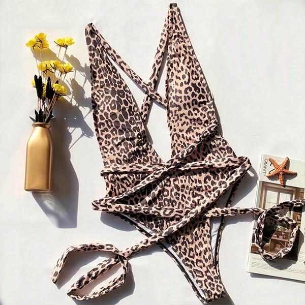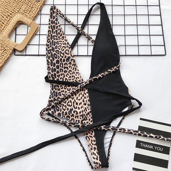 You look so sexy and alluring in this one-piece swimsuit. The leopard printed details make this piece look so eye-catching,while the backless and deep v-neck design will make it look sexier. I promise this swimsuit would make you be the most stunning beach girl!