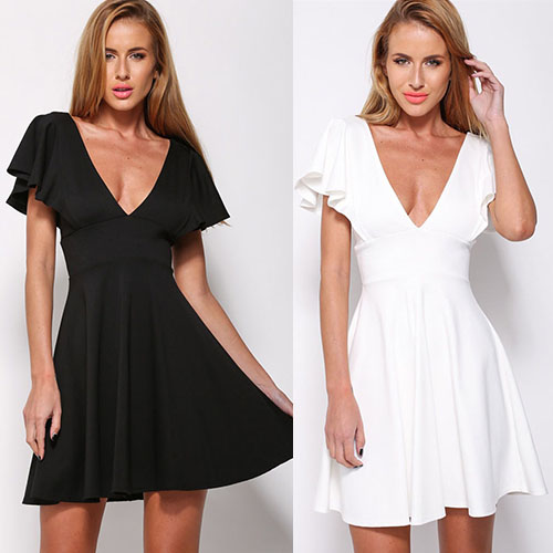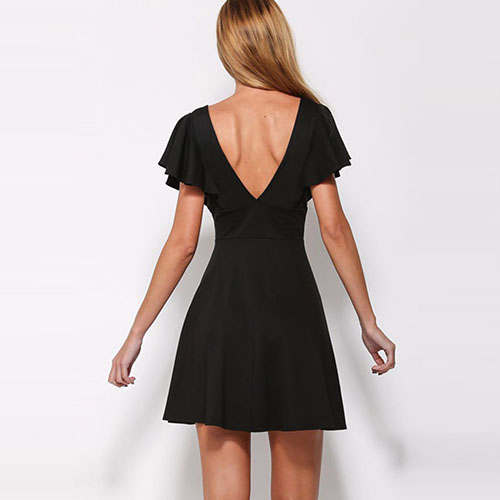 Backless and deep v-neck design gives way to this dress to create a sexy and sultry style.