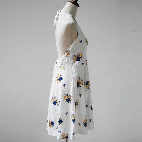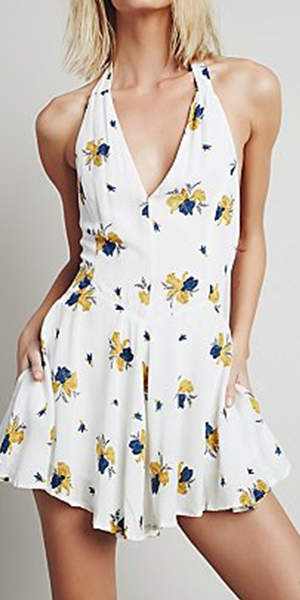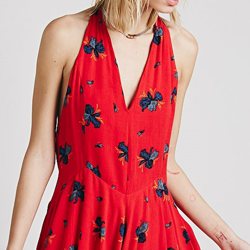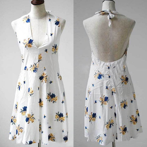 focused on this dress. Boasting a vibrant floral print,with backless and a deep v-neckline,this