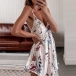 Wow,how could you look so sexy and alluring when you dress yourself up with this dress? SLing style,with backless and deep v-neck design,this piece definitely can make you look sexy and alluring. Its stringy selvedge and printed details will make this piece look more attractive. For the sun-soaked summer days,this piece is your wise choice.