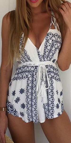 Your summer style should be like this sling romper! Boasting a vibrant floral print,with backless and deep v-neck