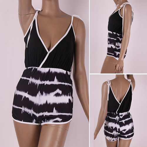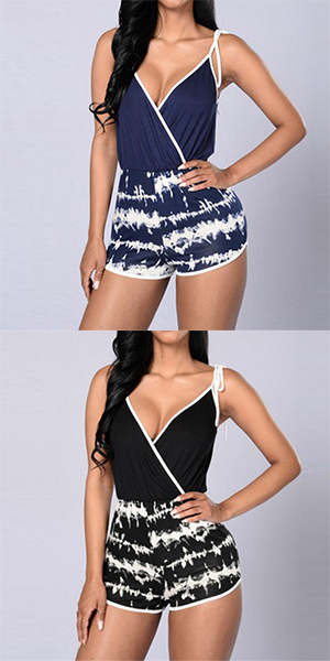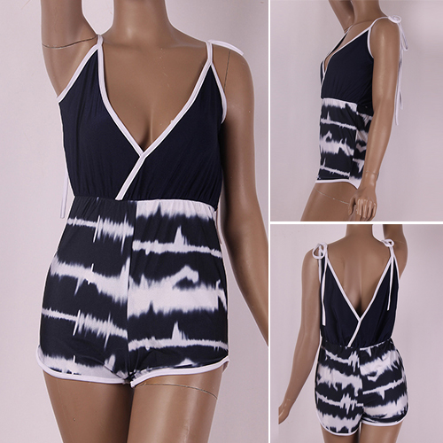 Sling style,designed with backless,deep v-neckline and chic printed pattern,this romper can give