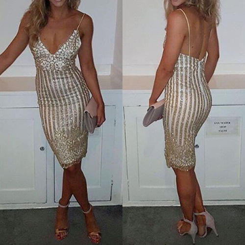 this dress. This sling dress with backless,deep v-neckline and a fit silhouette can give you a seductive