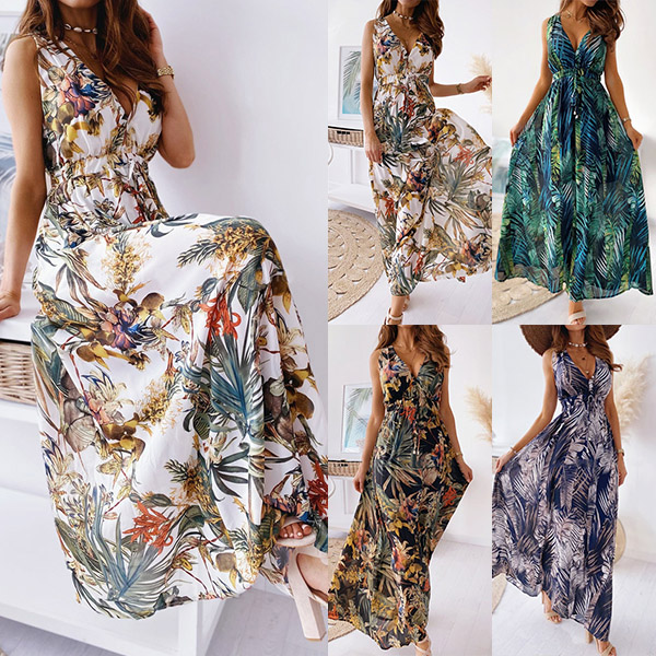 From your summer garden parties to beach trips,this beautiful sleeveless dress can give you a perfect transition. The backless and deep v-neck design make this piece look so sexy and alluring,while the high waist and maxi length design can better portray your slender figure. On these sunny days,adding a sweet straw hat would be more perfect!