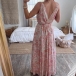 Sexy Backless Deep V-neck Sleeveless Printed Dress