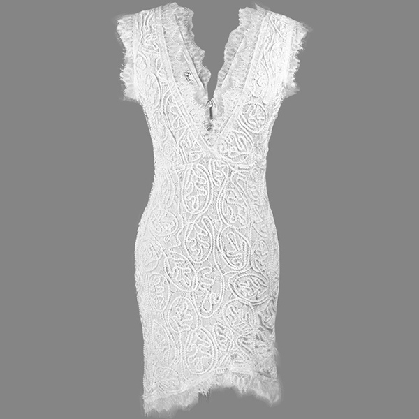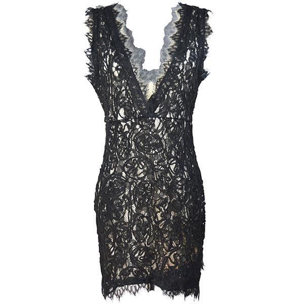 No matter when and where you are,you can easily be the focus when you don this lace dress. The backless and deep v-neck design make this piece look so flirty and alluring,while the tight silhouette design can showcase your perfect figure. For your night events and cocktail parties,this dress can easily make you be the focus.